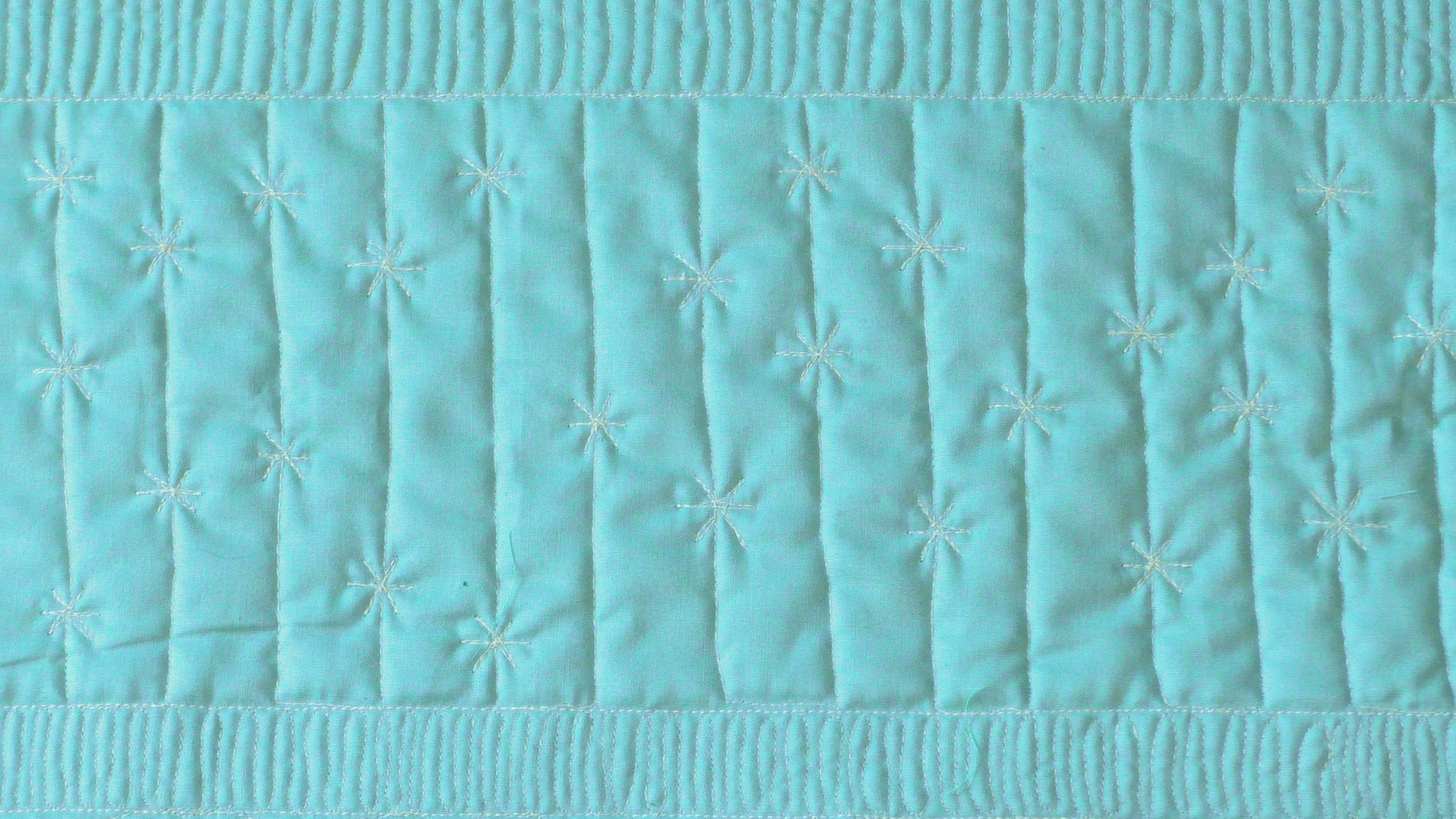 Als het goed gaat kun je de sterretjes op je quiltsandwich gaan quilten.